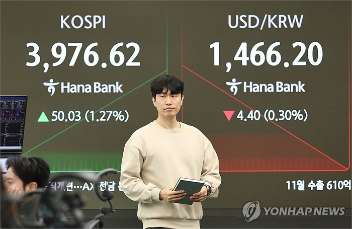 코코스피가 27일 기준금리 동결 발표 이후 추가 금리 인하 기대가 약해지면서 장중 4,000선 언저리에서 등락을 반복하고 있다.코스피는 오전 장중 4,023선까지 올랐지만 상승 흐름이 꺾이며 3,990선대로 밀려났다. 외국인과 기관은 각각 2천억원대 순매수하나, 개인은 5천억원 넘게 팔아치우며 지수 상승을 제한하고 있다.