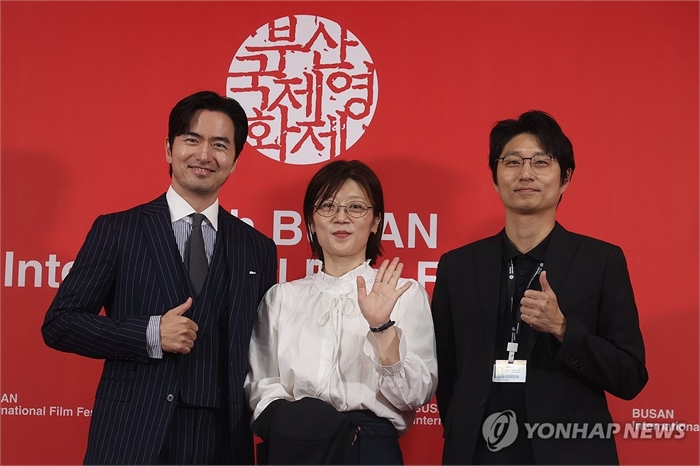 부산국제영화제 경쟁 부문 '실연당한 사람들을 위한 일곱 시 조찬모임' 기자회견 (부산=연합뉴스) 류효림 기자 = 배우 이진욱(왼쪽부터), 임선애 감독, 이성진 프로듀서가 23일 부산 해운대구 우동 영화의전당에서 열린 제30회 부산국제영화제 경쟁 부문 '실연당한 사람들을 위한 일곱 시 조찬모임' 기자회견에서 포즈를 취하고 있다. 2025.9.23 ryousanta@yna.co.kr