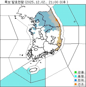2일 오후 9시 이후 기준 기상 특보 발효 현황 (사진=연합뉴스)