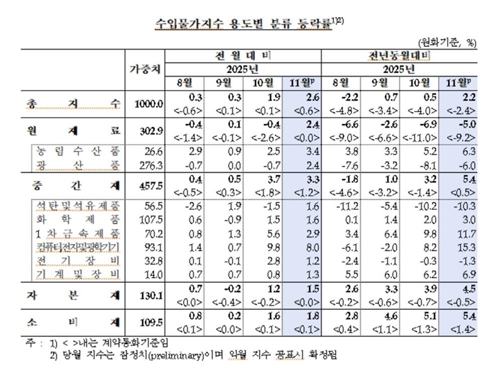 원화 가치 하락이 수입물가에 직접 반영된 것으로 분석된다.