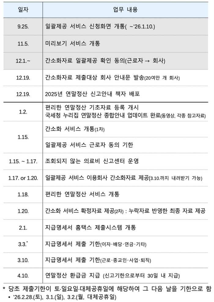 2025년 귀속 연말정산 일정 (사진=연합뉴스)