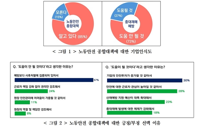 국내 기업 10곳 중 7곳이 새 정부의 노동안전 종합대책을 ‘처벌 강화 중심’으로 보고 우려하는 것으로 나타났다. 조사에서 기업들은 대책이 중대재해 예방 효과는 낮고 경영 위축만 초래한다고 지적했다.정부가 발표한 노동안전 종합대책에 대해 기업 73%는 “중대재해 예방에 도움 되지 않는다”고 답했다. 이유로는 ‘사후 처벌에