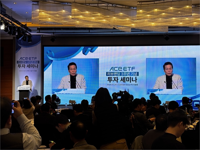 24일 여의도에서 열린 한국투자신탁운용 ‘ACE ETF’ 리브랜딩 3주년 세미나에서 배재규 사장이 AI 거품론과 기술주 고점 논쟁은 본질이 아니라며 테크기업 중심의 장기 투자 전략을 강조했다.배 사장은 “지금이 고점이면 어떻고 저점이면 어떻겠느냐”며 “AI 버블인지 아닌지는 누구도 알 수 없다”고 말했다. 시장의 단기 논