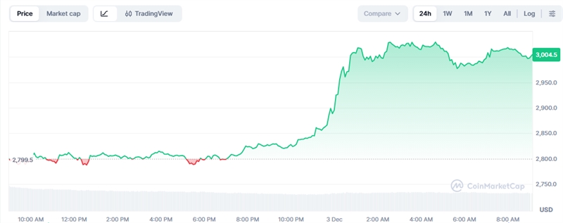 Ethereum이 하루 동안 5.82% 상승하며 전체 시장 상승률을 크게 앞질렀다. Fusaka 업그레이드 가동, 주요 기술 지표 개선, 기관 매수세가 결합해 가격이 3,000달러를 돌파했다. Ethereum 네트워크는 12월 3일 Fusaka 업그레이드를 정식으로 활성화했다. 이번 업그레이드는 Peer Data Avai