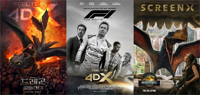 영화 '드래곤 길들이기', 'F1: 더 무비', '쥬라기 월드: 새로운 시작' 포스터 [CJ CGV 제공. 재판매 및 DB 금지]