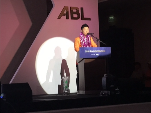 챔피온 시상식에 축하연설하는 우준식 본부장 = ABL생명(2016), ABA손해보험(2019) 양사의 챔피언 타이틀을 모두 달성.